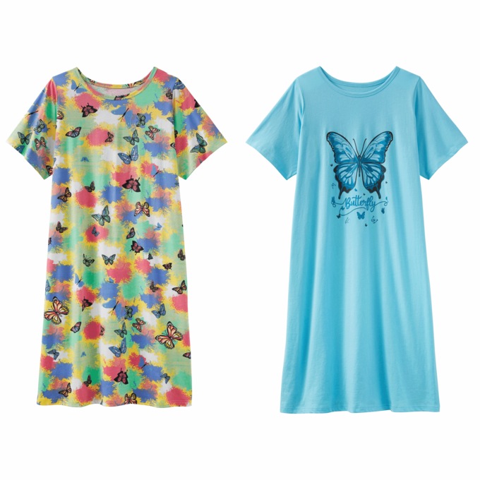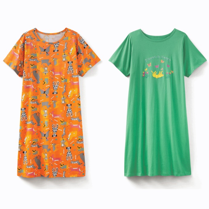 Lightweight, breathable sleepshirts in 100% cotton. Machine wash. Imported. One size Misses: fits M–XL, 40". One size Women's: fits 1X–3X, 42".
