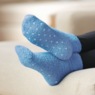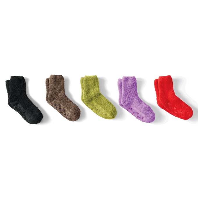 These super soft socks have rubber grippers for sure footing. Polyamide/spandex. Machine wash. Imported. One size.