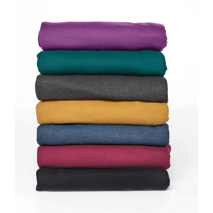 Full elastic waist and side-seam pockets. Cotton/polyester knit. Machine wash. Imported. P 27"; Misses 29"; Plus 29".