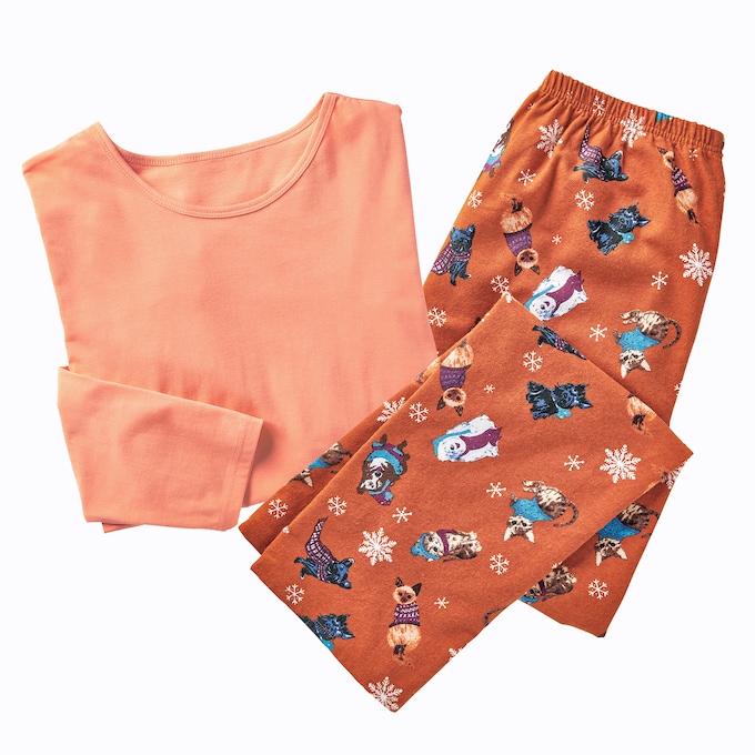 These pajamas for women come in a variety of solid color tops with fun matching prints on the bottoms. Here's a fashion tip: Get two or more sets and mix-and-match them whenever you need to change things up!