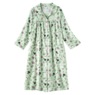 Snap-front duster with 3/4-length sleeves and patch pockets. Woven 100% cotton. Machine wash. Imported. M 42"; W 44".