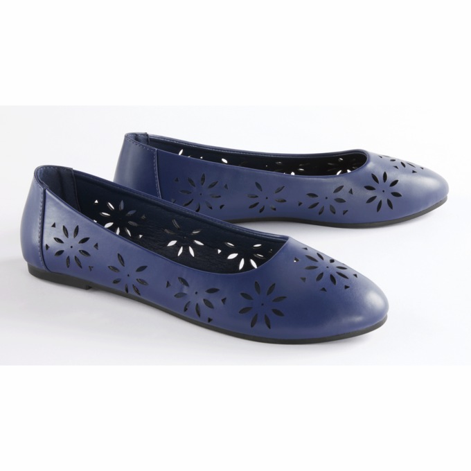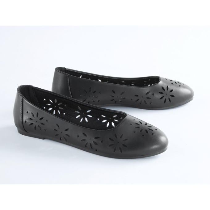 Step into spring! Slip on flat with floral cut-out design. Synthetic upper and TPR outsole. Whole sizes only; half sizes order next size up.