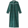 Traditional plaid gown is soft and comfy. Pull-over style with button-front placket and stand up collar. 100% cotton. Machine wash. Imported. M 50"; W 52".