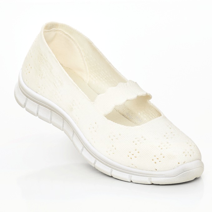 A lightweight mary jane with knit upper and cushioned footbed. PVC sole. Half sizes order next size up.