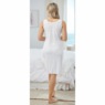 Sleeveless slip has cut out medallion lace on center front with edge lace around neckline, armhole openings and hemline. Princess seams and wide straps. Polyester. Machine wash. Made in USA. P 40"; M 41"; W 42".