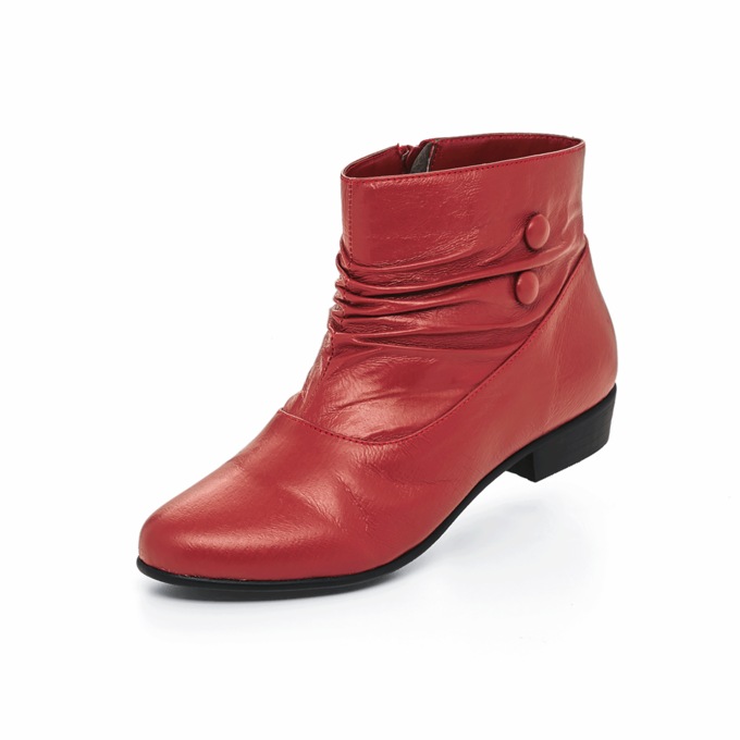 Slouch boot has a side zip closure and button detailing. Soft cushioned insole. 1" heel. Synthetic. Imported.
