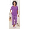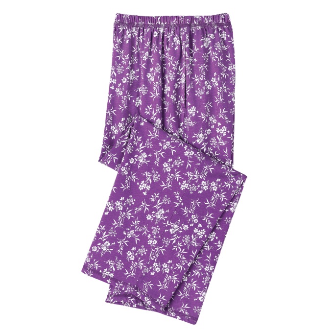 Short-sleeve shirt with elastic waist pants in a floral print. Cotton/polyester knit. Machine wash. Imported. Misses: Top 26", Inseam 21"; Plus: Top 28", Inseam 21".