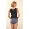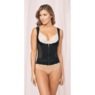 Firm control power mesh fabric and flexible boning are features of this zip-front vest. Crisscrossing, scoop back bands and low scoop below bust at front. Polyester/spandex knit. Gentle wash. Imported. Order by dress size; runs small, order one size up.