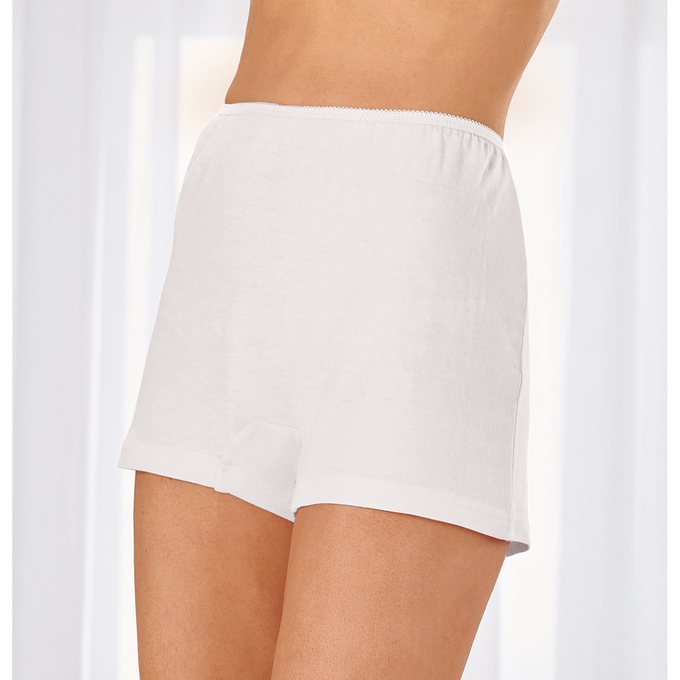 No more panty lines! 100% cotton knit briefs feature wide, flat-hemmed legs and elastic waist. Machine wash. Imported.
