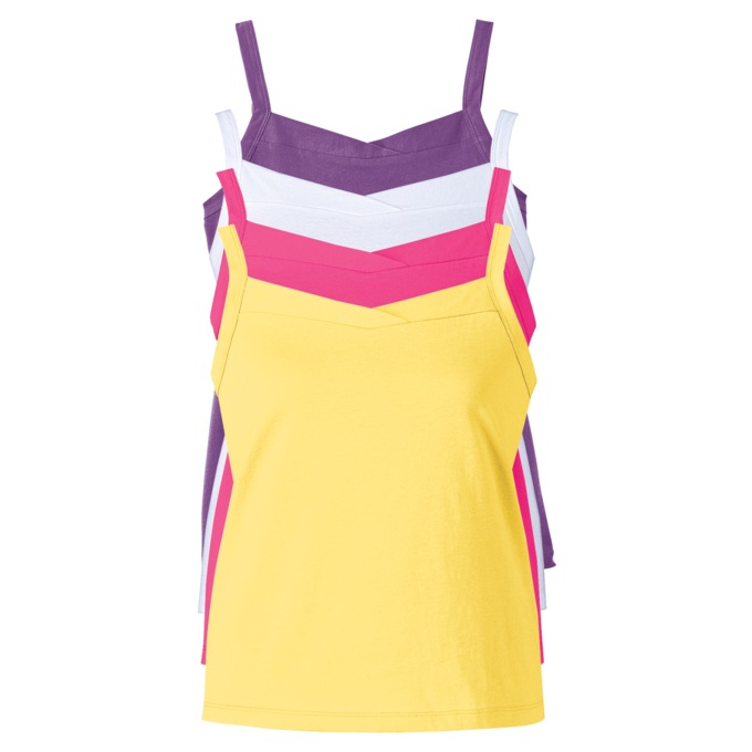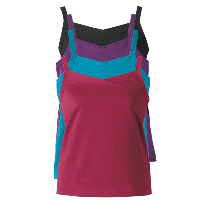 100% cotton knit camisoles are cool and comfy with flattering sweetheart necklines. Machine wash. Imported. Misses 25"; Plus 27".