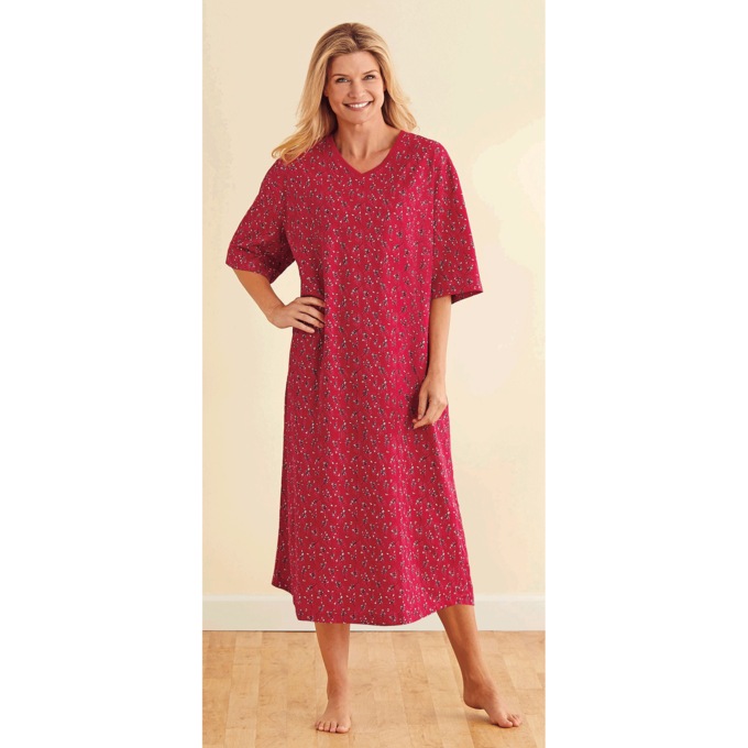 2-pack super soft 100% cotton jersey with a ribbed V-neck. Includes 1 solid and 1 print. Cotton. Machine wash. Imported. One Size Misses 46"; One Size Plus 46".