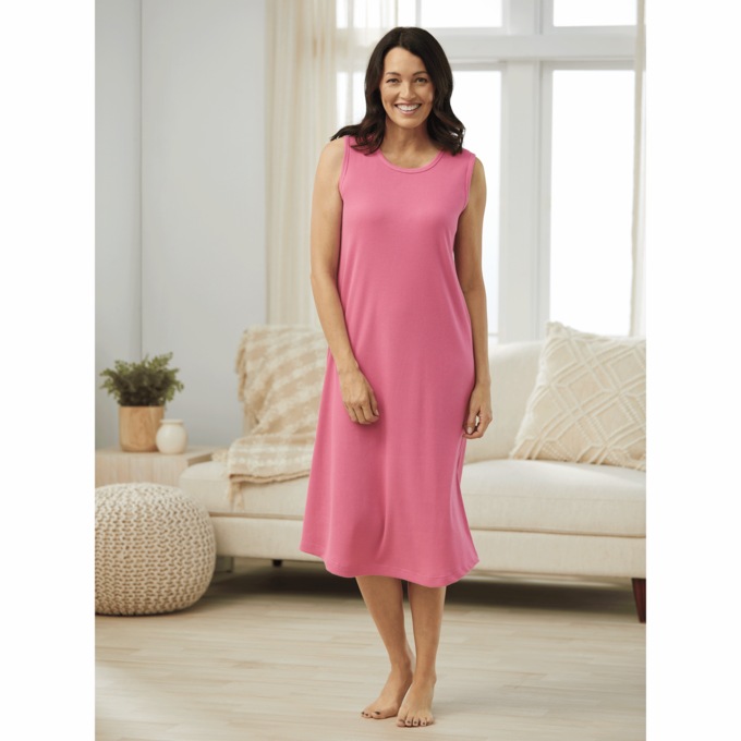 Wide-Rib Sleeveless Nightgown, Wide-Rib Sleeveless Nightgown, , large click and hold to zoom