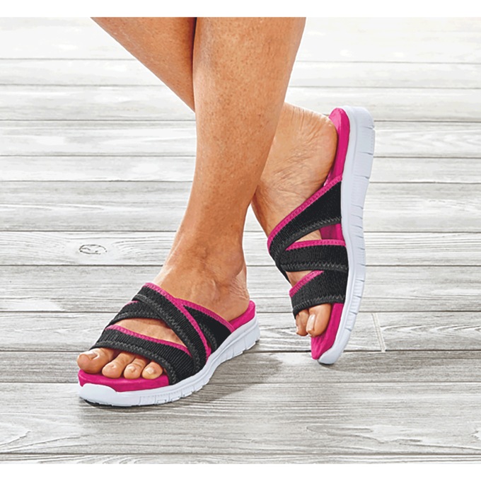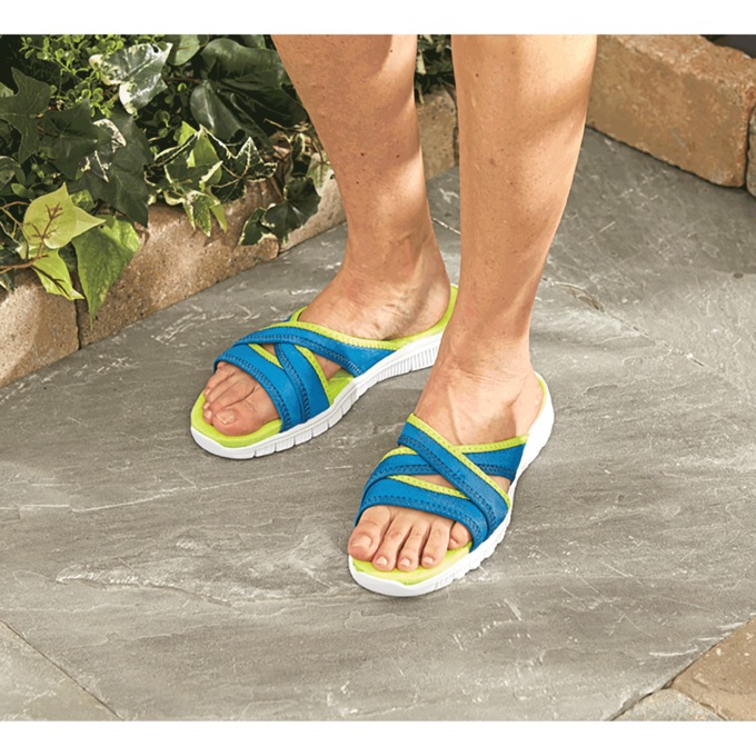 Faux suede cushioned insole. Textile padded straps and a lightweight sole. Whole sizes only. Half sizes order next size up.
