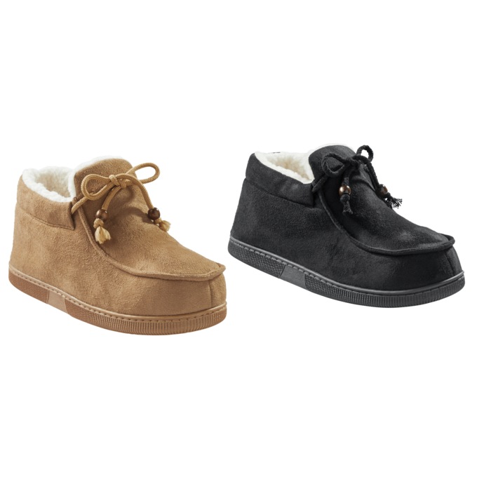 From running errands to staying in, you'll love this classically styled slipper. Faux-suede upper. Soft faux-fur lining and functional ties with beads. TPR outsole. Textile.