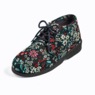 Tie-front bootie in soft corduroy is perfect for cool weather. Cushioned insole and flexible outsole. 1" heel. Imported. Half sizes order next size up.